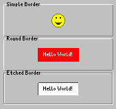 Border(String label, int x, int y, int width, int height, int style) | Erzeugt eine neue Border mit der angegebenen Beschriftung, Position und Größe. Für den style -Parameter stehen folgende Kostanten zur Auswahl: STYLE_SIMPLE_BORDER , STYLE_ROUND_BORDER und STYLE_ETCHED_BORDER . |