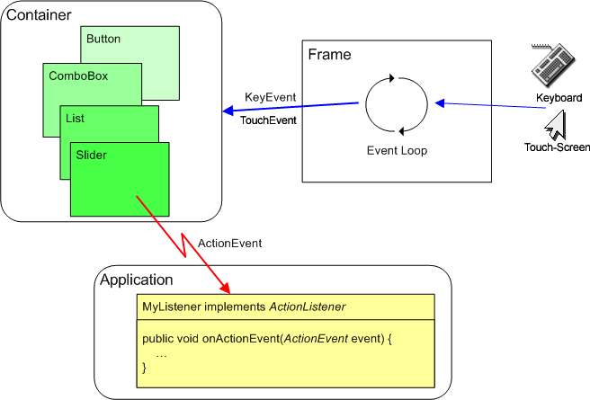 ). The determined GUI componente will now react on the user input and eventually trigger an ActionEvent