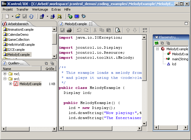 Dieses Kapitel vermittelt einen allgemeinen Überblick über die Entwicklungsumgebung JControl/IDE. Dazu werden die Menü- und Symbolleisten, der Projekt-Navigator sowie die Editoren für Quelltexte und Ressourcen (Bilder Schriftsätze etc.) beschrieben.