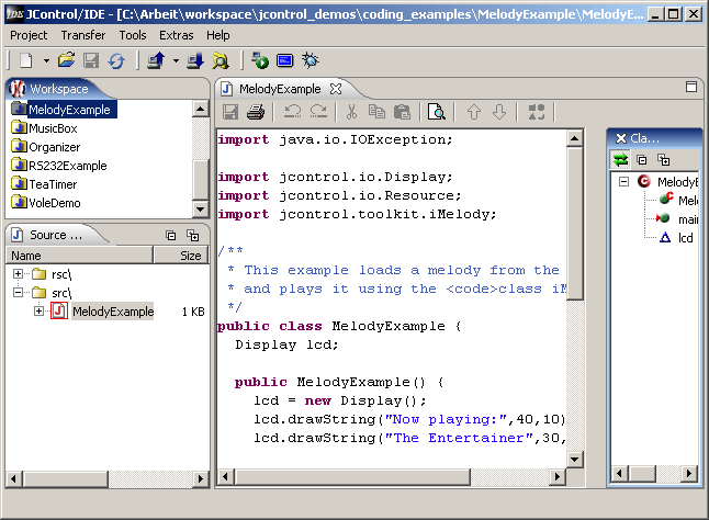 This chapter gives an overview over the integrated development environment JControl/IDE. The menus, icons, the project navigator and the source code and resource editors will be explained.