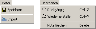 Der Melodie-Editor verändert (wie Text- und Bild-Editor) ebenfalls die Menüleiste der JControl/IDE (Bild 7). Über den Menüpunkt Datei->Import können Tonspuren aus vorhandenen Midi-Dateien (Erweiterung: mid) importiert werden. Die beiden Menüs sind in Bild 8 zu sehen.