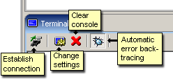 As long as this button is checked, Java exceptions thrown by the connected device will be backtraced automatically and the corresponding Java source code will be displayed. This only works if the error occurred in a program section that has a source code reference in the project.