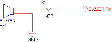 Einem JControl-Modul Töne zu entlocken ist relativ einfach. Im einfachsten Fall genügt ein Piezo-Summer und ein Widerstand. Bild 1 zeigt die unaufwendige Schaltung: Der Summer (engl. Buzzer) ist auf der einen Seite mit dem GND-Potential (0 Volt) verbunden. Die andere Seite des Summers ist über einen Widerstand mit dem entsprechenden BUZZER-Pin des JControl-Moduls verbunden (dieser Pin kann mittels des jeweiligen Produkt-Datenblatts http://www.domologic.de/support/ch1/index_de.html gefunden werden). Der Widerstand dient zur Begrenzung des maximalen Stromflusses und schützt so den Ausgang des JControl-Modul vor Schäden.